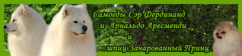 Немного обо мне и моих собаках. В 1999 г. я переехала жить загород. До этого в московской квартире я никогда не держала собак, считала, что в квартире, какая бы она большая ни была, собаке не комфортно. Из пород собак мне всегда нравились таксы.В 2003 г. я купила себе стандартную гладкошерстную таксу Ренессанс Сольдо, дома Дизель. Через год я приобрела миниатюрную жесткошерстную таксу Ренессанс Тарас БраунДома его зовут Кельт. Таксы - замечательные, умные собаки. Настоящие маленькие охранники. Хотелось еще собаку, размером побольше, умную, не очень злую. Хотела купить или кавказскую овчарку, или среднеазиатскую, но потом решила, что с такой серьезной и крупной собакой не справимся. Мой выбор случайно остановился на арктическом (полярном) шпице – белоснежной собаке породы самоед. Так у меня появился мой первый самоед Акела, благодаря которому и был создан этот сайт. А теперь посвящается его светлой памяти. Акела был чудесной собакой, умной и очень послушной. Меня с ним связывает много счастливых воспоминаний. У меня живут два самоеда – Сэр Фердинанд и Арнальдо Аресменди. Парни – сорви-голова. Если бы вдруг они превратились в людей, то стали бы гламурными мальчиками. Ребята радуют меня не только своими победами на выставках, но и дома, на прогулках. Желаю посетителям нашего сайта приятного просмотра. |